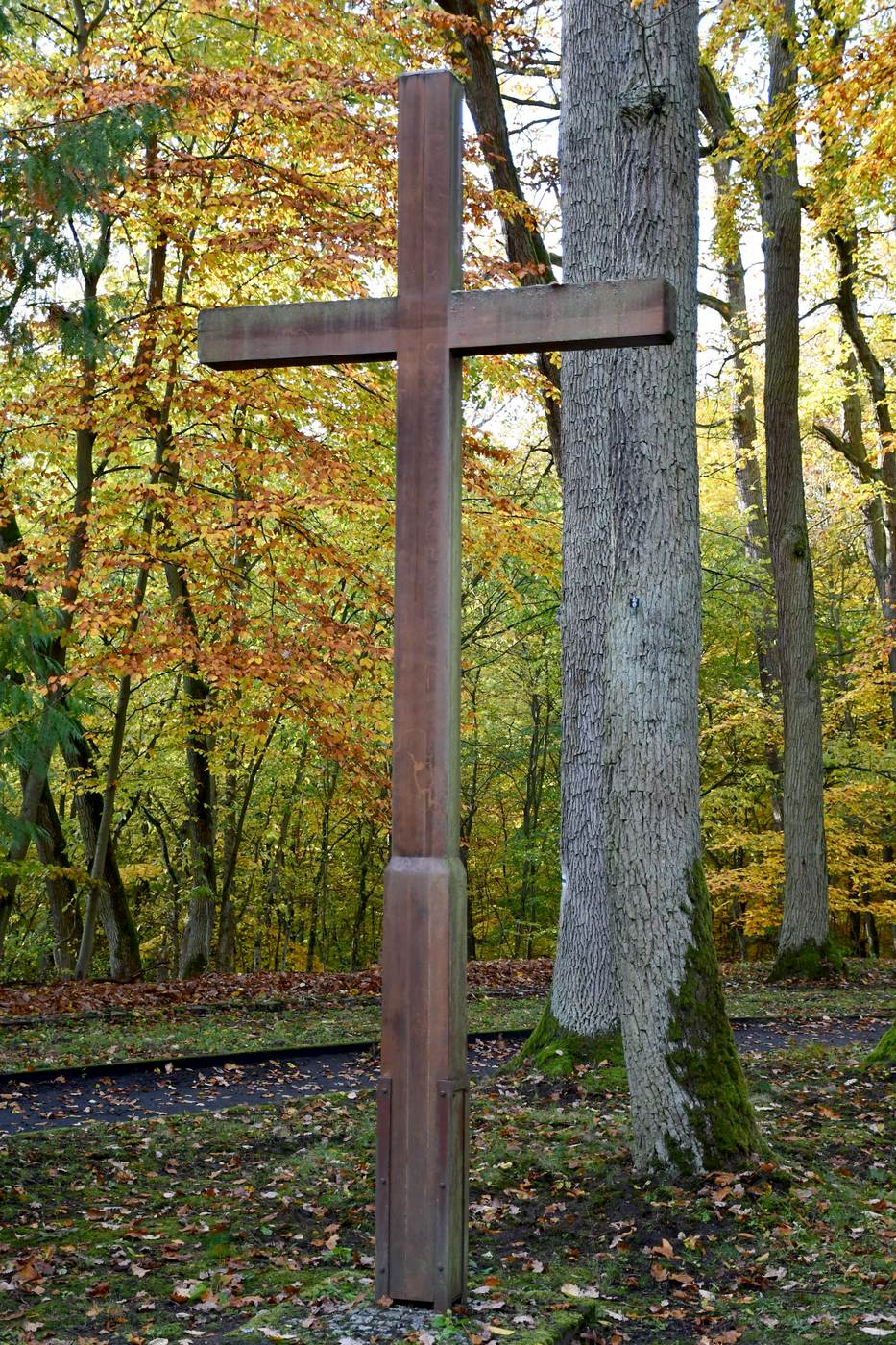 Pomnik Pamięci Ofiar Barbarki, autorstwa Mariana Molendy, odsłonięty w 2009 roku, przedstawia klęczącego mężczyznę z opuszczoną głową i związanymi rękami – symbol cierpienia, pokory i godności ofiar. Na cokole wyryto imiona i nazwiska zidentyfikowanych osób, by ich pamięć pozostała żywa w sercach kolejnych pokoleń.