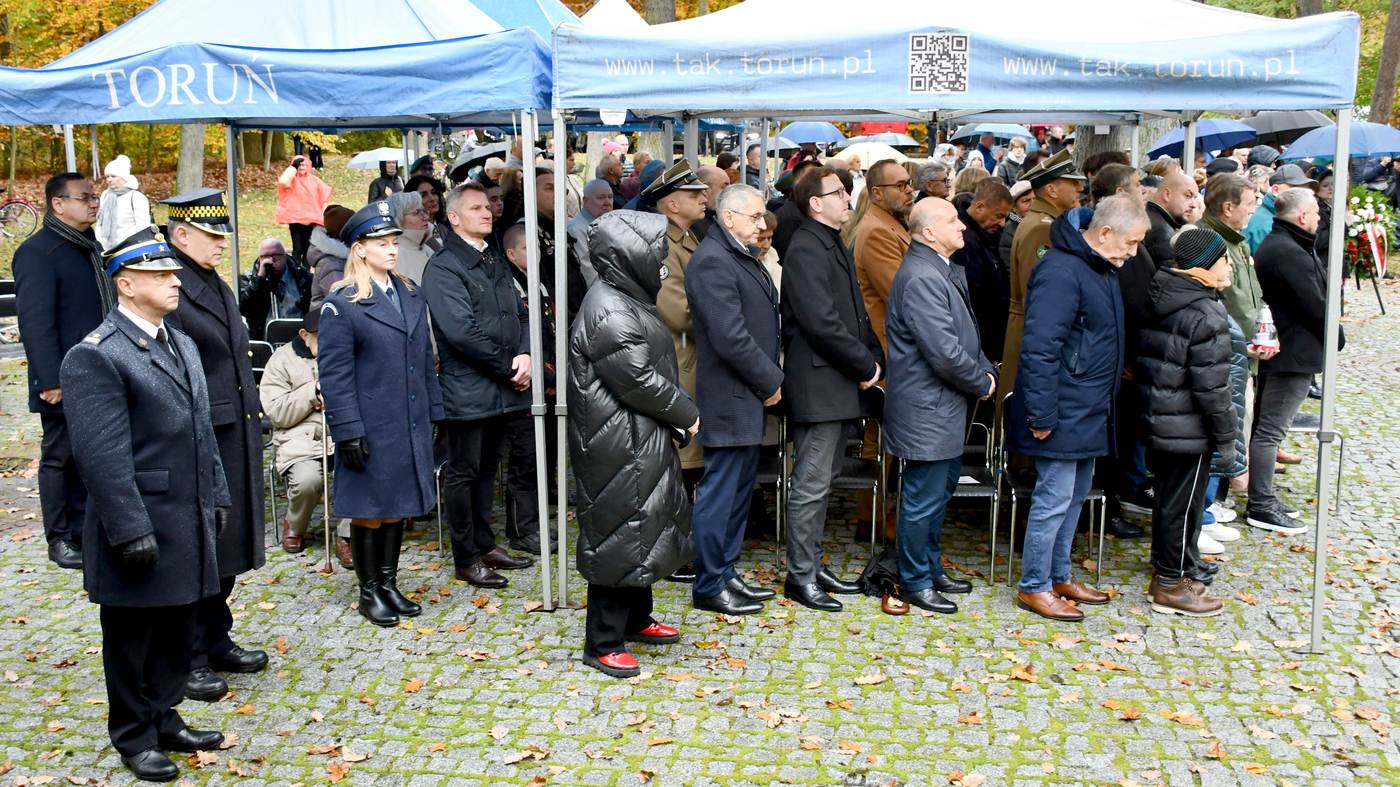 W obchodach uczestniczyli przedstawiciele władz miasta, instytucji, służb mundurowych oraz licznie zgromadzeni mieszkańcy Torunia. Pomimo chłodu i deszczu, atmosfera uroczystości była pełna zadumy i szacunku.