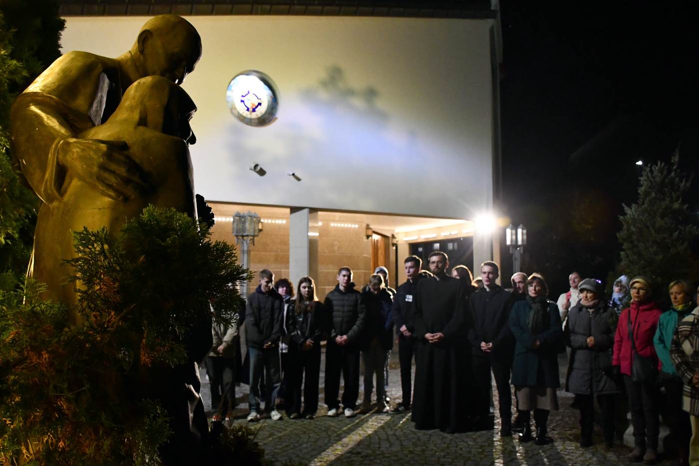 Spotkanie zakończyło się wspólną modlitwą przy pomniku św. Jana Pawła II przy kościele św. Antoniego. Wierni przynieśli znicze, które rozświetliły przestrzeń wokół pomnika, tworząc nastrój modlitwy i refleksji. W atmosferze skupienia i wzruszenia uczestnicy odśpiewali ulubioną pieśń papieża – „Barkę”, która od lat pozostaje symbolem jego duchowej drogi i bliskości z wiernymi.