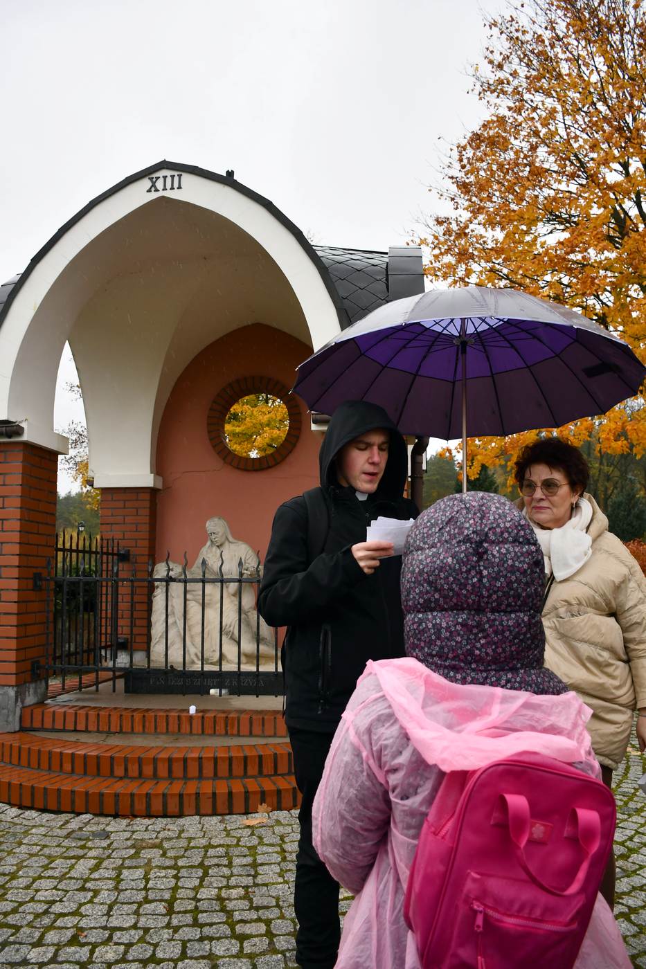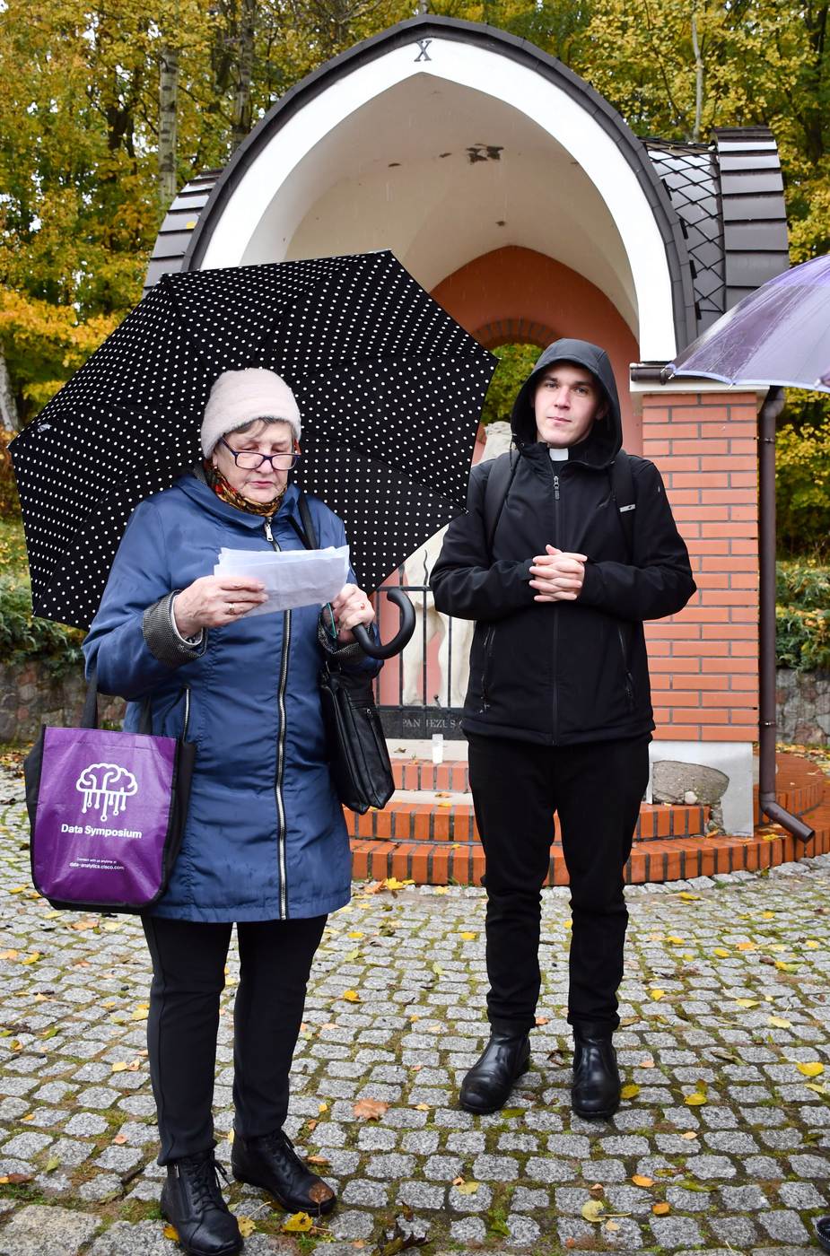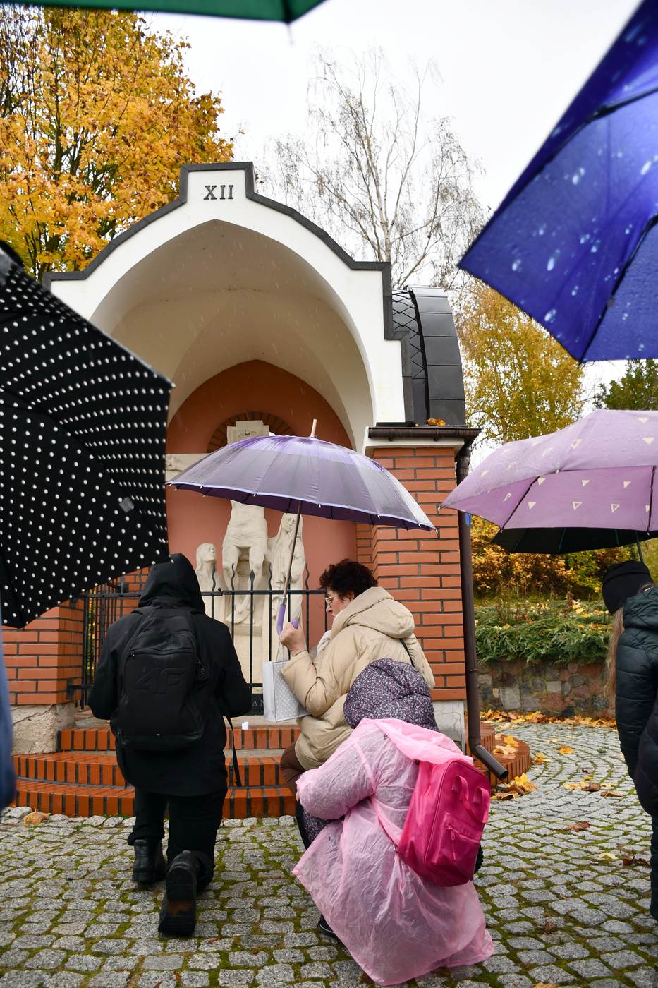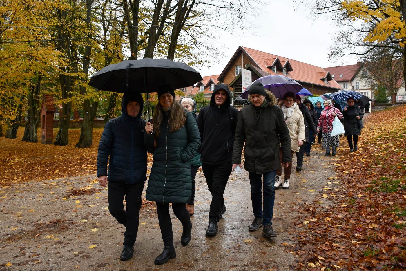 Po przybyciu do sanktuarium uczestnicy wzięli udział w uroczystej Mszy Świętej o godzinie 12.00, sprawowanej w bazylice Narodzenia Najświętszej Maryi Panny. Następnie wspólnie odmówiono Koronkę do Miłosierdzia Bożego, prosząc o łaski dla naszej wspólnoty i całego Kościoła. Kolejnym punktem pielgrzymki była Droga Krzyżowa na gietrzwałdzkich błoniach, odprawiona w skupieniu i ciszy mimo deszczu i chłodu. Te chwile modlitwy przy stacjach Męki Pańskiej stały się dla wielu pielgrzymów głębokim duchowym przeżyciem, czasem osobistego spotkania z Chrystusem i Jego Matką.