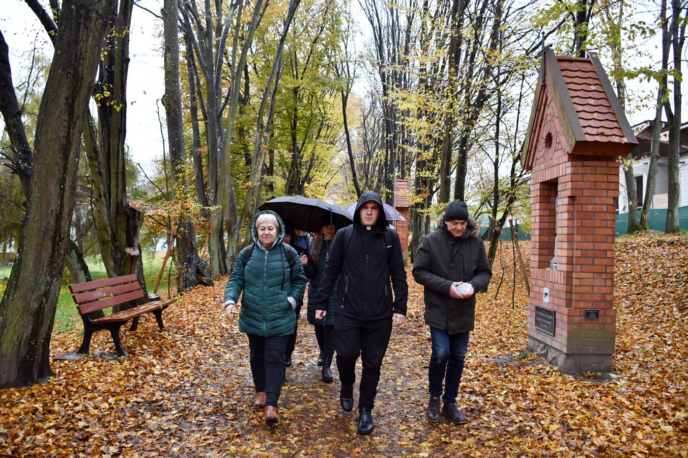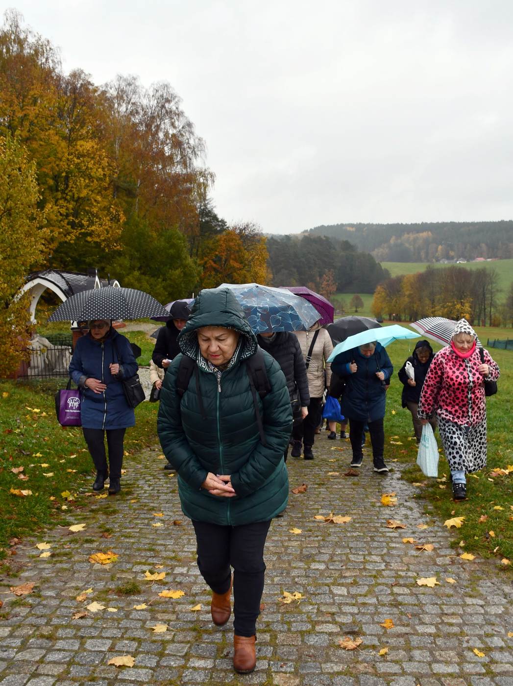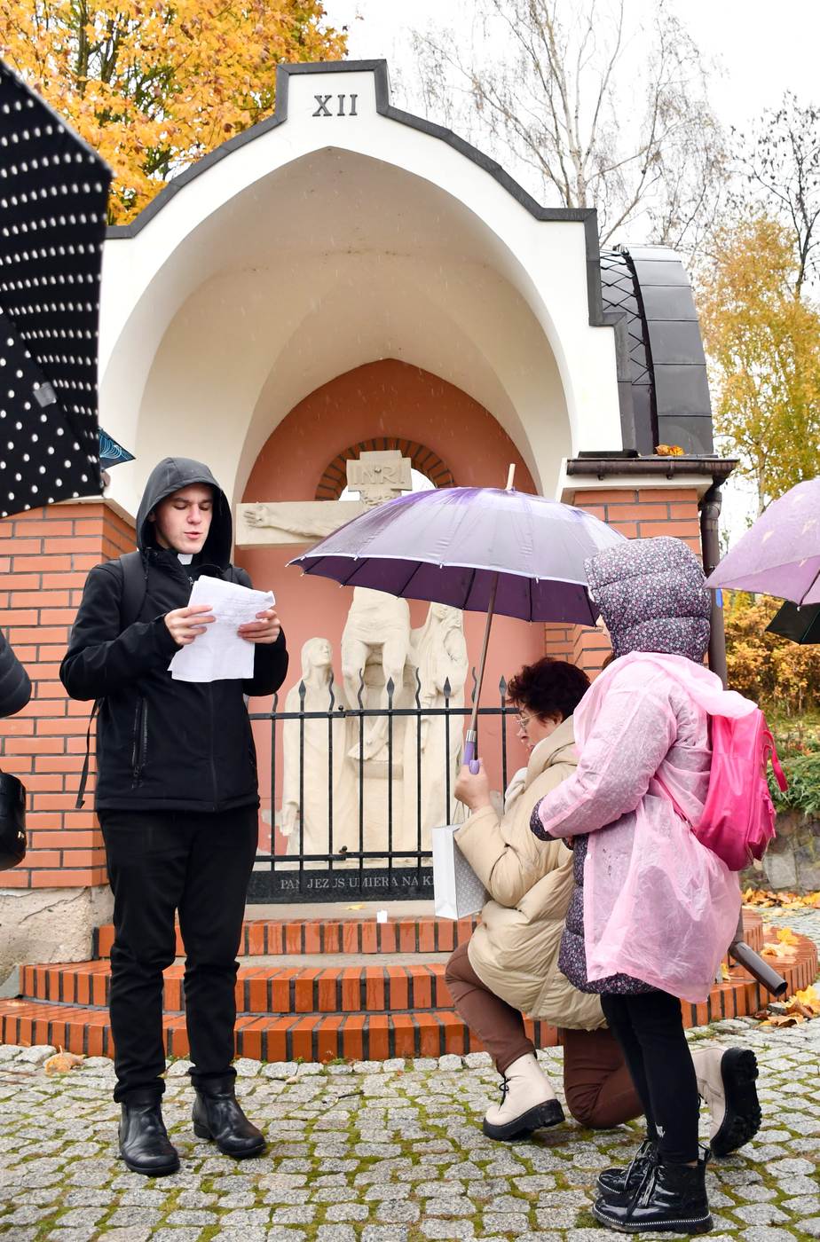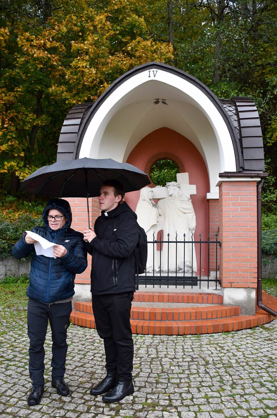 Po przybyciu do sanktuarium uczestnicy wzięli udział w uroczystej Mszy Świętej o godzinie 12.00, sprawowanej w bazylice Narodzenia Najświętszej Maryi Panny. Następnie wspólnie odmówiono Koronkę do Miłosierdzia Bożego, prosząc o łaski dla naszej wspólnoty i całego Kościoła. Kolejnym punktem pielgrzymki była Droga Krzyżowa na gietrzwałdzkich błoniach, odprawiona w skupieniu i ciszy mimo deszczu i chłodu. Te chwile modlitwy przy stacjach Męki Pańskiej stały się dla wielu pielgrzymów głębokim duchowym przeżyciem, czasem osobistego spotkania z Chrystusem i Jego Matką.