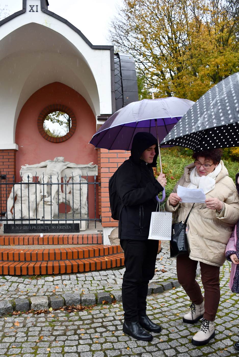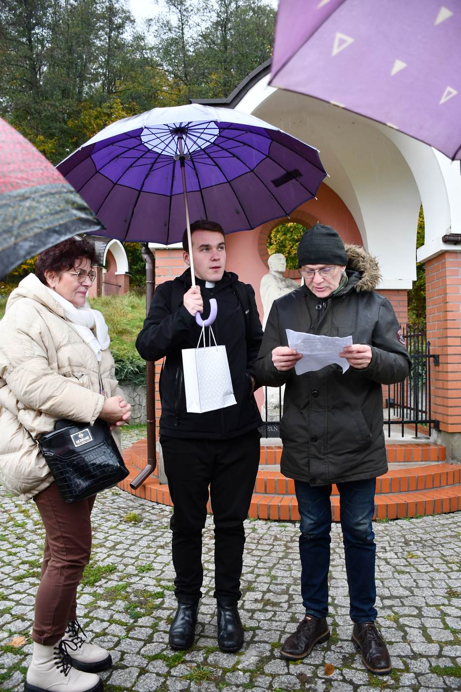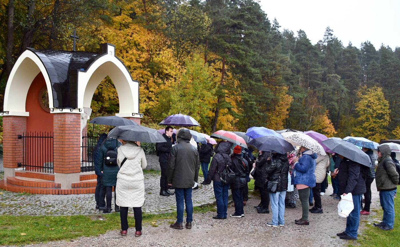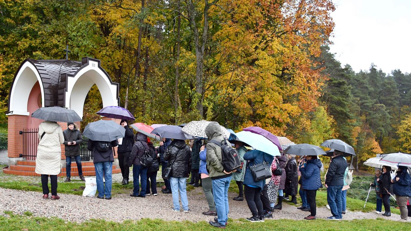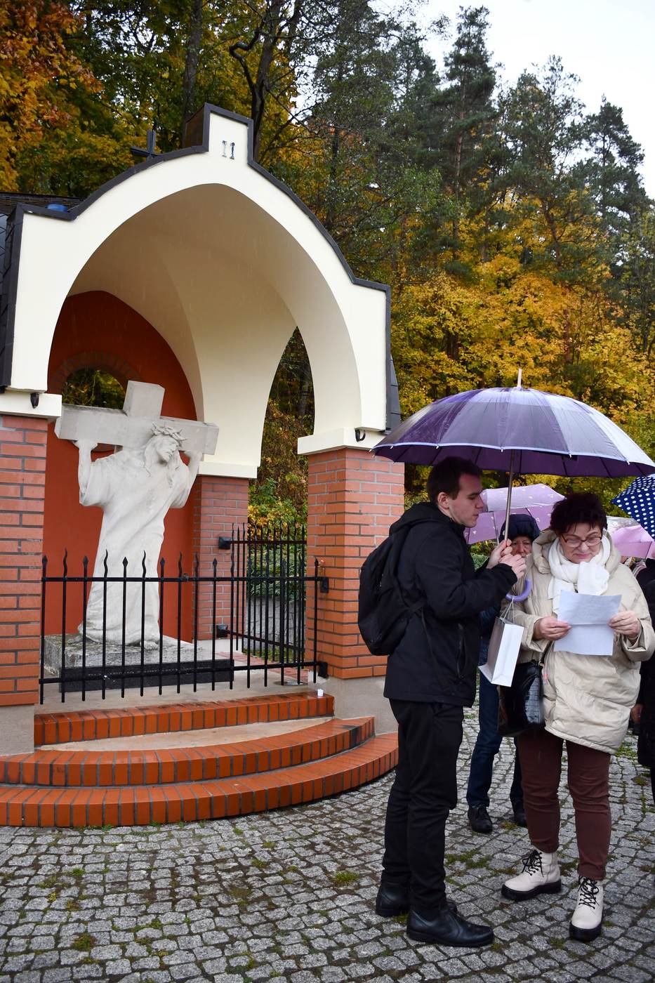 Po przybyciu do sanktuarium uczestnicy wzięli udział w uroczystej Mszy Świętej o godzinie 12.00, sprawowanej w bazylice Narodzenia Najświętszej Maryi Panny. Następnie wspólnie odmówiono Koronkę do Miłosierdzia Bożego, prosząc o łaski dla naszej wspólnoty i całego Kościoła. Kolejnym punktem pielgrzymki była Droga Krzyżowa na gietrzwałdzkich błoniach, odprawiona w skupieniu i ciszy mimo deszczu i chłodu. Te chwile modlitwy przy stacjach Męki Pańskiej stały się dla wielu pielgrzymów głębokim duchowym przeżyciem, czasem osobistego spotkania z Chrystusem i Jego Matką.