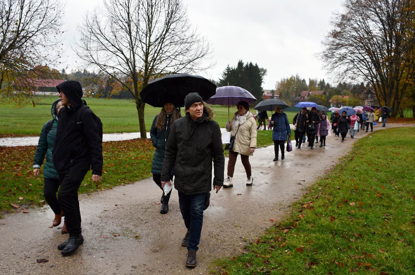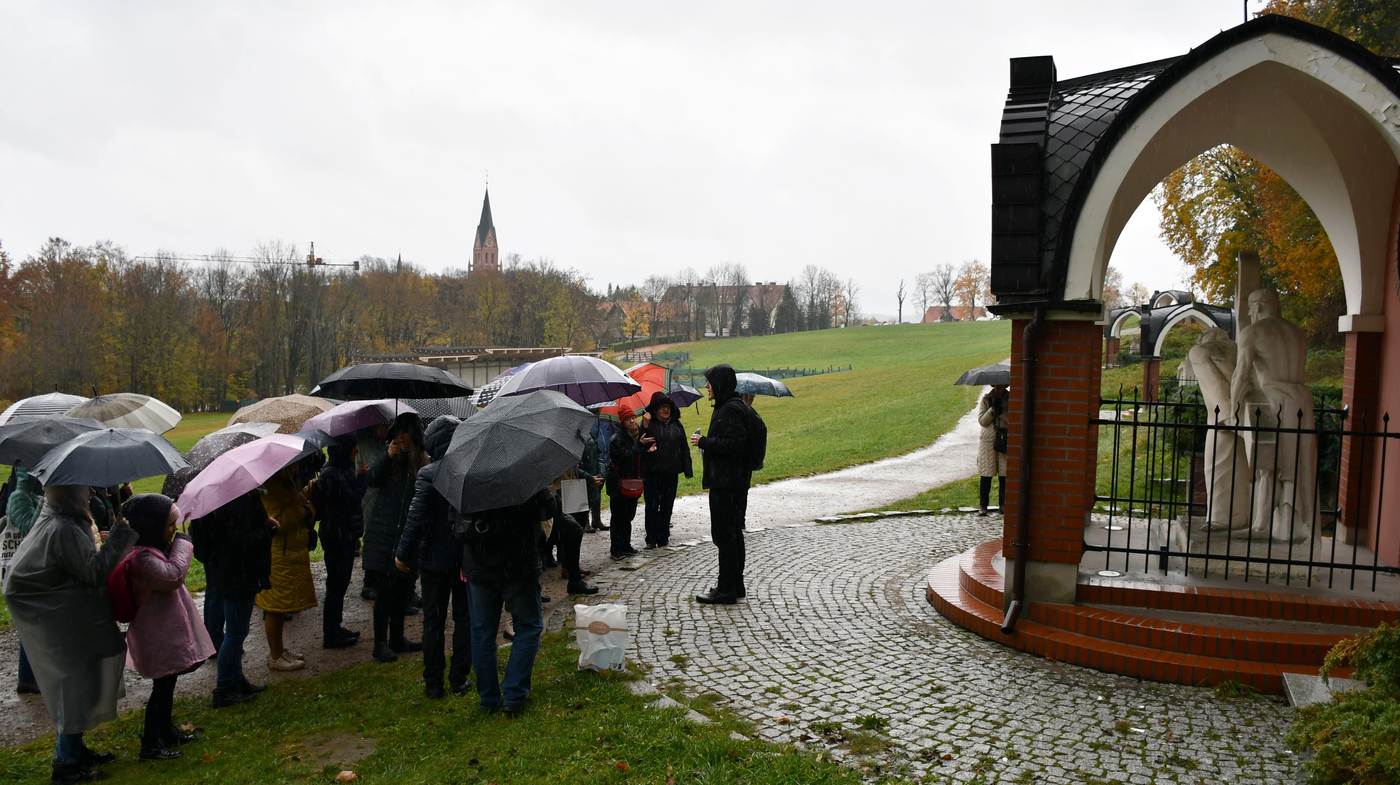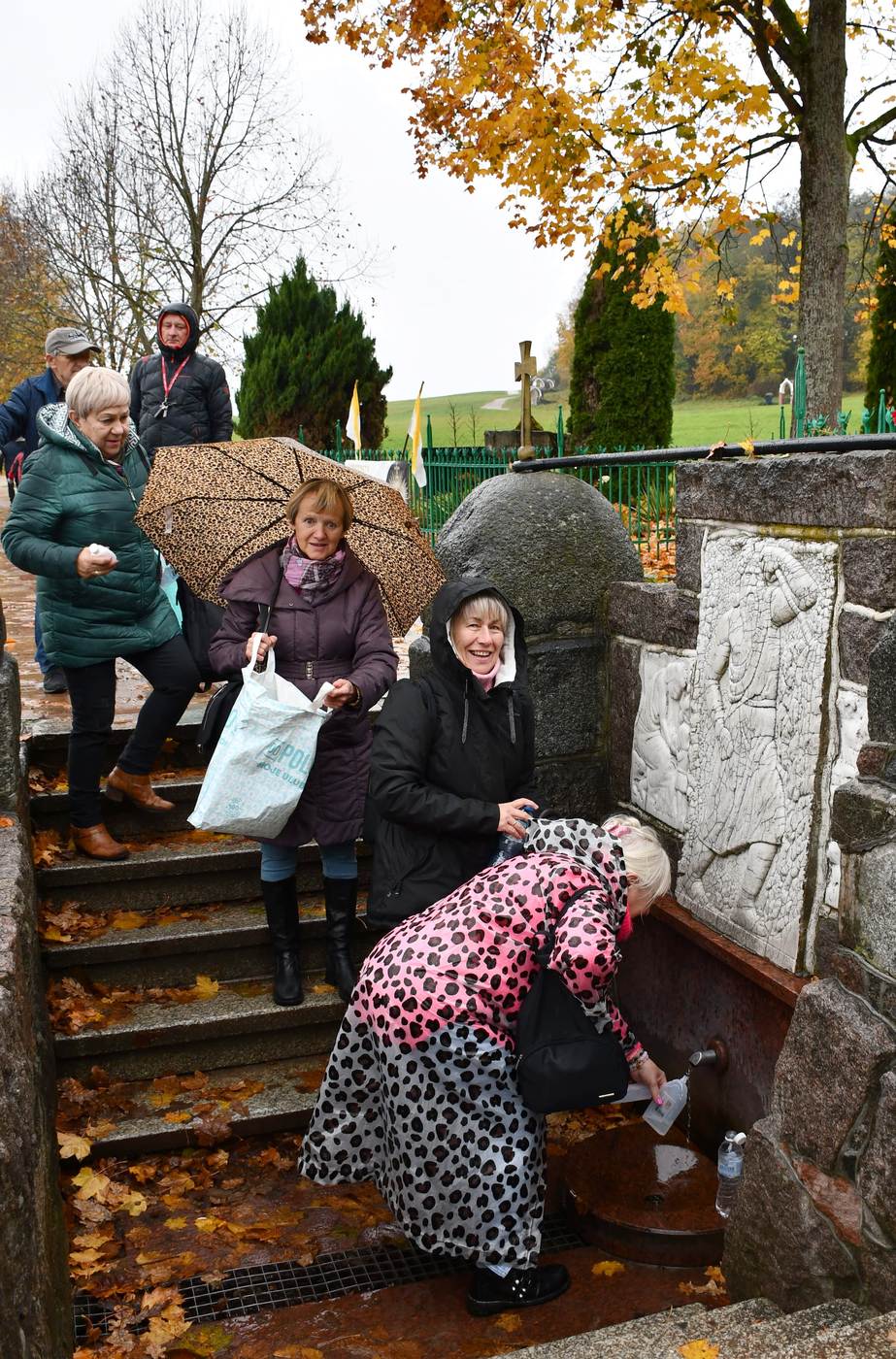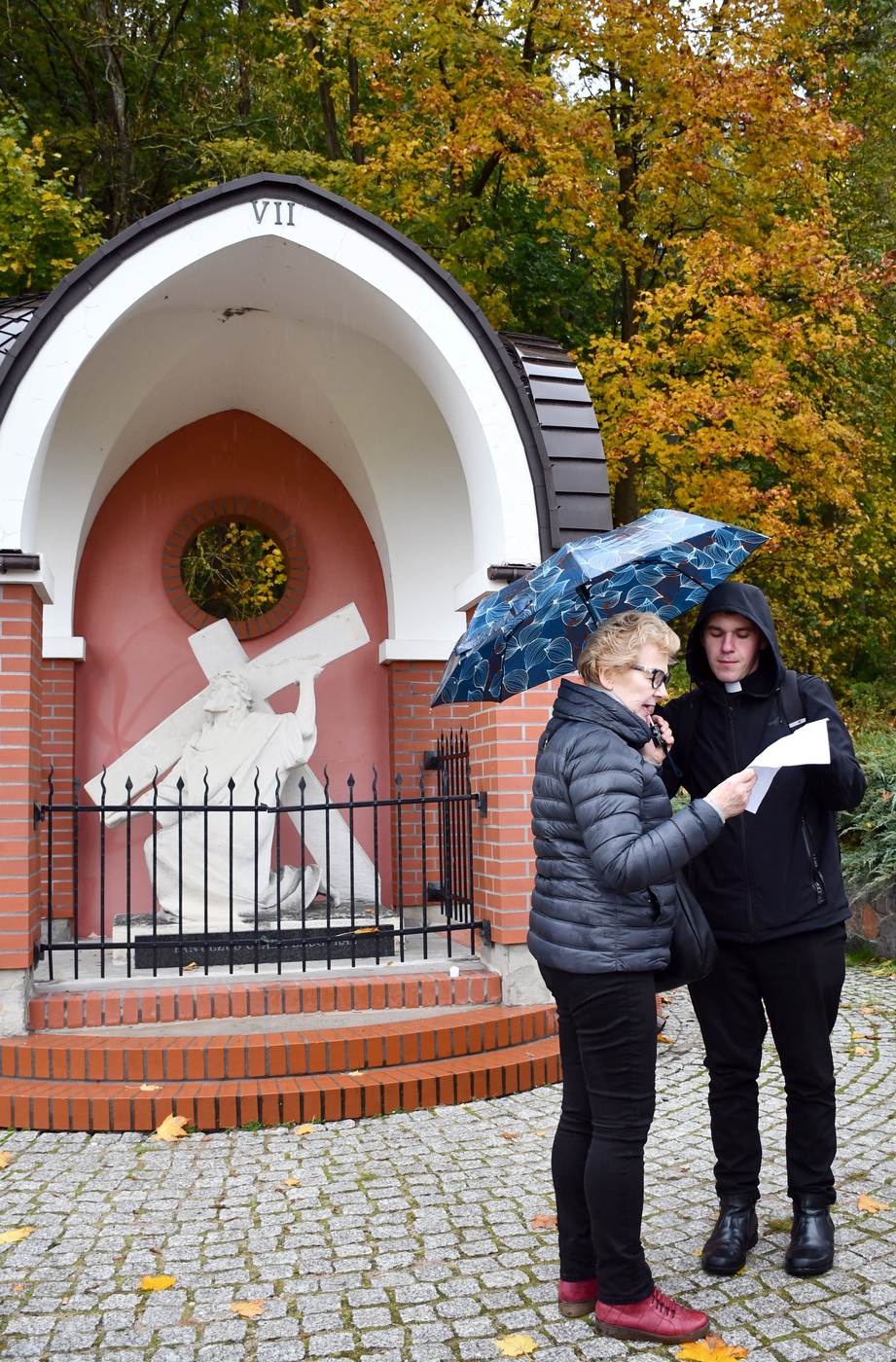 Po przybyciu do sanktuarium uczestnicy wzięli udział w uroczystej Mszy Świętej o godzinie 12.00, sprawowanej w bazylice Narodzenia Najświętszej Maryi Panny. Następnie wspólnie odmówiono Koronkę do Miłosierdzia Bożego, prosząc o łaski dla naszej wspólnoty i całego Kościoła. Kolejnym punktem pielgrzymki była Droga Krzyżowa na gietrzwałdzkich błoniach, odprawiona w skupieniu i ciszy mimo deszczu i chłodu. Te chwile modlitwy przy stacjach Męki Pańskiej stały się dla wielu pielgrzymów głębokim duchowym przeżyciem, czasem osobistego spotkania z Chrystusem i Jego Matką.