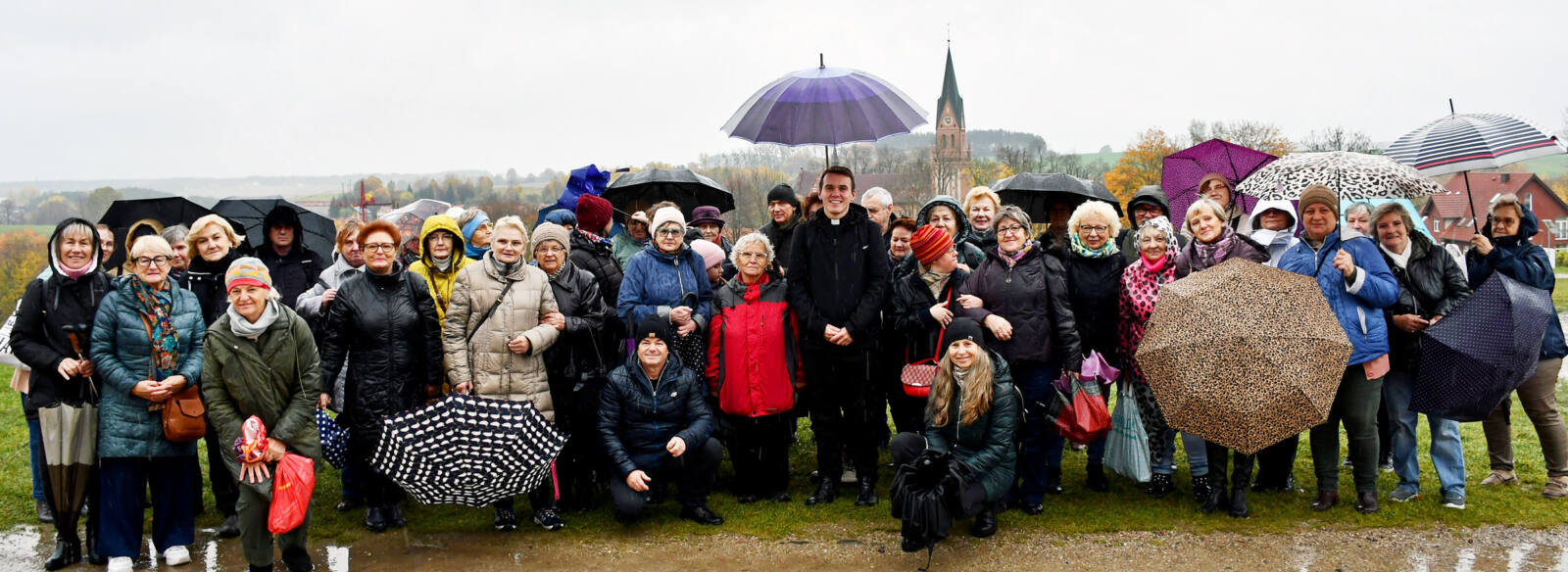 Pielgrzymka do Gietrzwałdu miała szczególny wymiar – była nie tylko formą modlitewnego dziękczynienia, ale także aktem zawierzenia Matce Bożej wszystkich spraw naszych rodzin, parafii oraz Kościoła. Wielu uczestników przyniosło ze sobą intencje, które w milczeniu serca powierzali Maryi. Pomimo trudnych warunków atmosferycznych, nikt nie narzekał – deszcz, jak mówili niektórzy pielgrzymi, był „Bożym błogosławieństwem z nieba”, przypomnieniem o odnowieniu i oczyszczeniu ducha.
